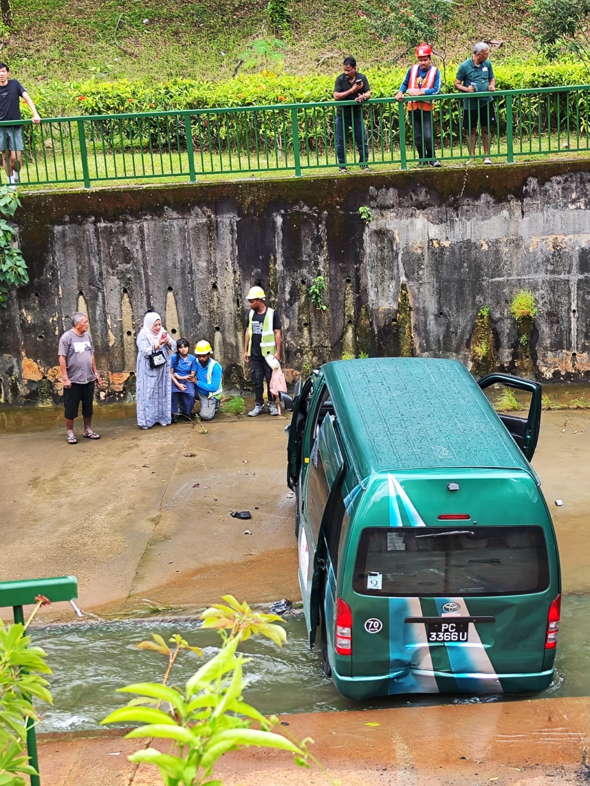 19 Aug 2025: Bukit Panjang residents witnessed a dramatic accident on Tuesday afternoon when a mini bus veered off the road and plunged into a roadside storm drain.