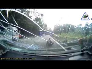 24/4/2021: A submitted footage show a truck crashing into a car at a slip road. In the video,